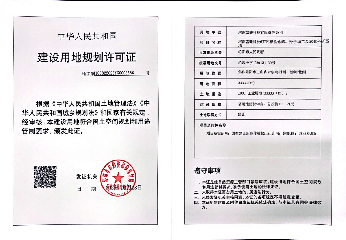 河南富硅科技有限责任公司河南富硅科技6万吨粮食仓储、种子加工及农业科研基地建设用地规划许可