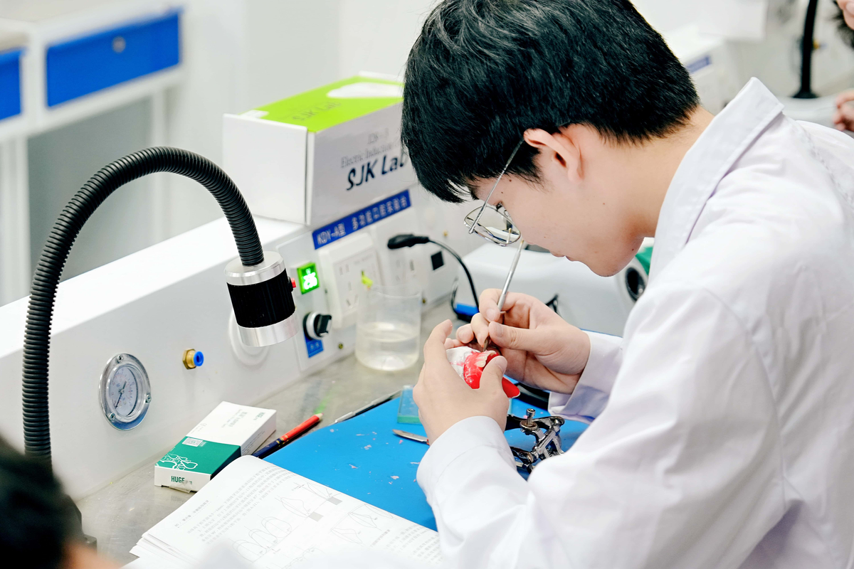 在郑州医药健康职业学院内,医学影像实训中心、口腔医学教学实训中心、VR中药虚拟仿真实训平台等多个智慧医养实训室,为学生构建更贴近实际的教学模式。该校口腔医学技术教师刘佳峰说,他们教授的是全口义齿工艺技术课程,加强实操才能让学生学到真本事。